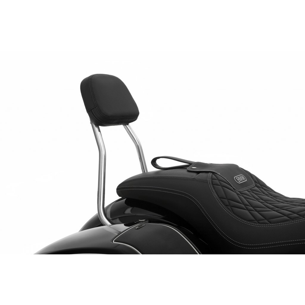 Díky pohodlnému čalounění zajišťuje naše sissy opěrkapro BMW R 18 nejen bezpečnější, pohodlnější a uvolněnější cestování, ale také zdůrazňuje atraktivní zadní část modelu R 18 svým vysoce kvalitním designem. Design dokonale navazuje na styl modelu R 18. Chromovaná konstrukce vytváří koordinovaný akcent. S citem pro detail jsme použili stejný vysoce kvalitní krycí materiál, kterým je lavice pokryta. Náš čalounický pracovník spojil části s příslušným vzorem švu, tj. Přizpůsobil se sedadlu. Subtilní a vybrané!