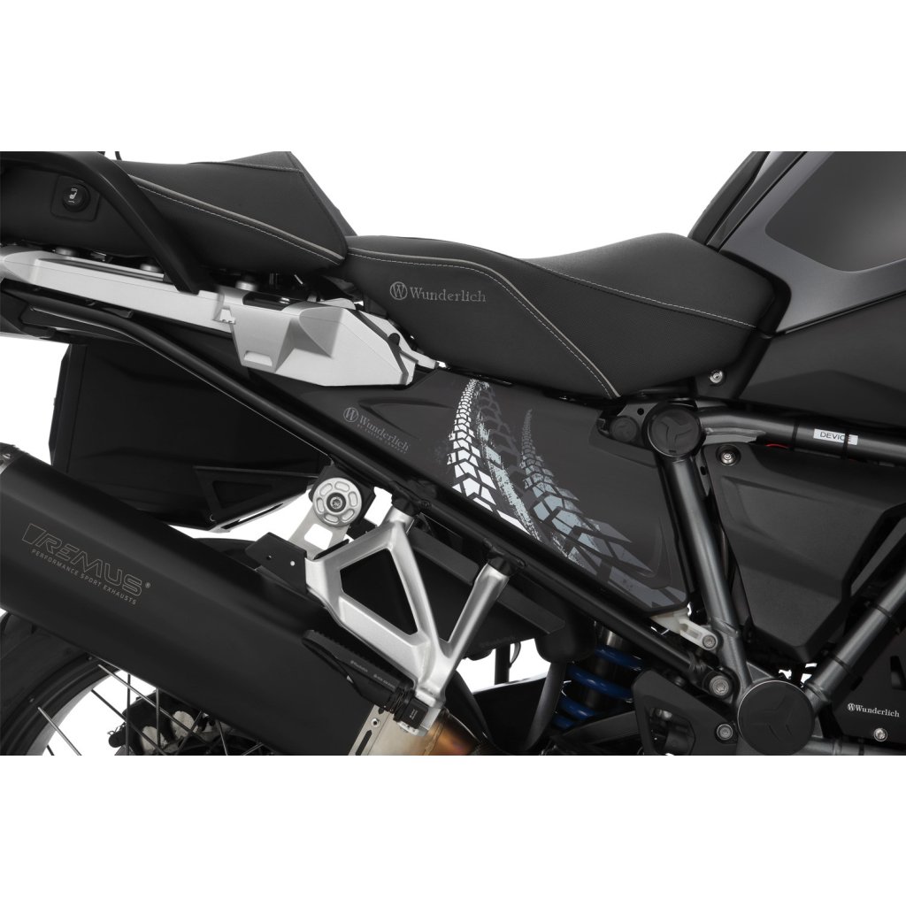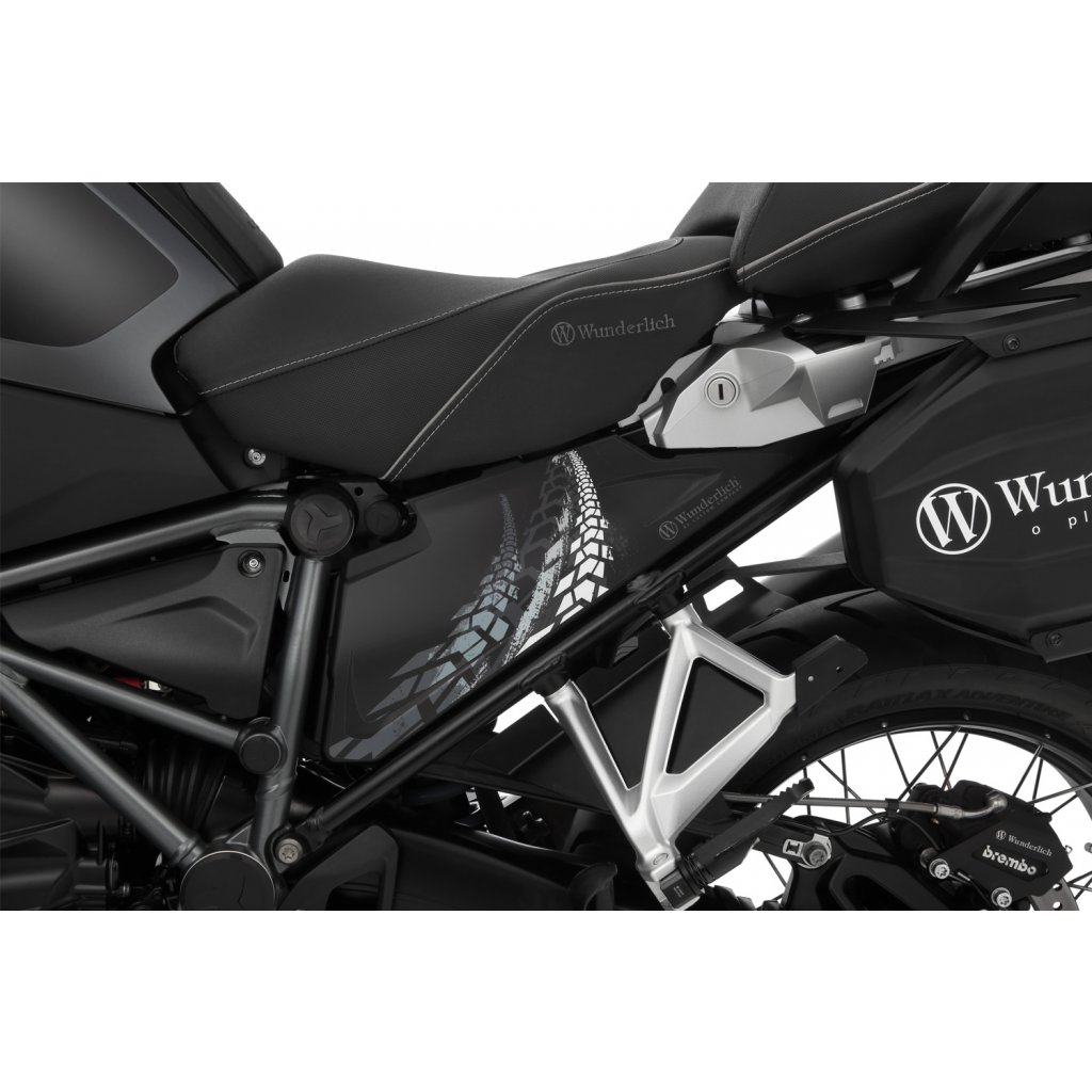 Obě poloviny opláštění dokonale uzavírají boční otvory rámu. Vyhozené nečistoty, kamínky, stříkající voda nebo bláto jsou účinně zachyceny nebo odkloněny dříve, než dorazí k řidiči a spolujezdci. Znečištění stroje je znatelně sníženo. Konstrukce, která je díky filetům dynamická, zůstává jemná a na motocyklu působí nenápadně a harmonicky. Montáž a demontáž jsou velmi snadné.