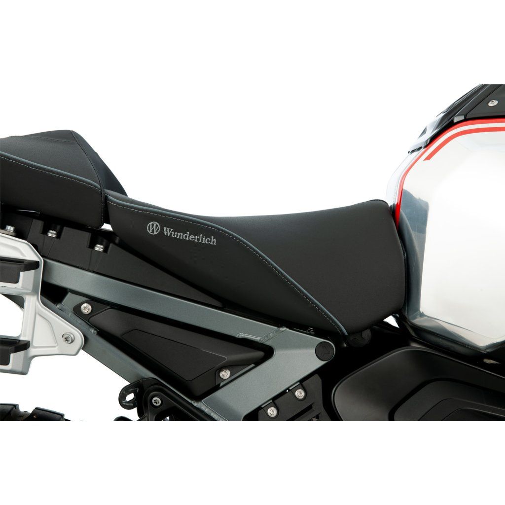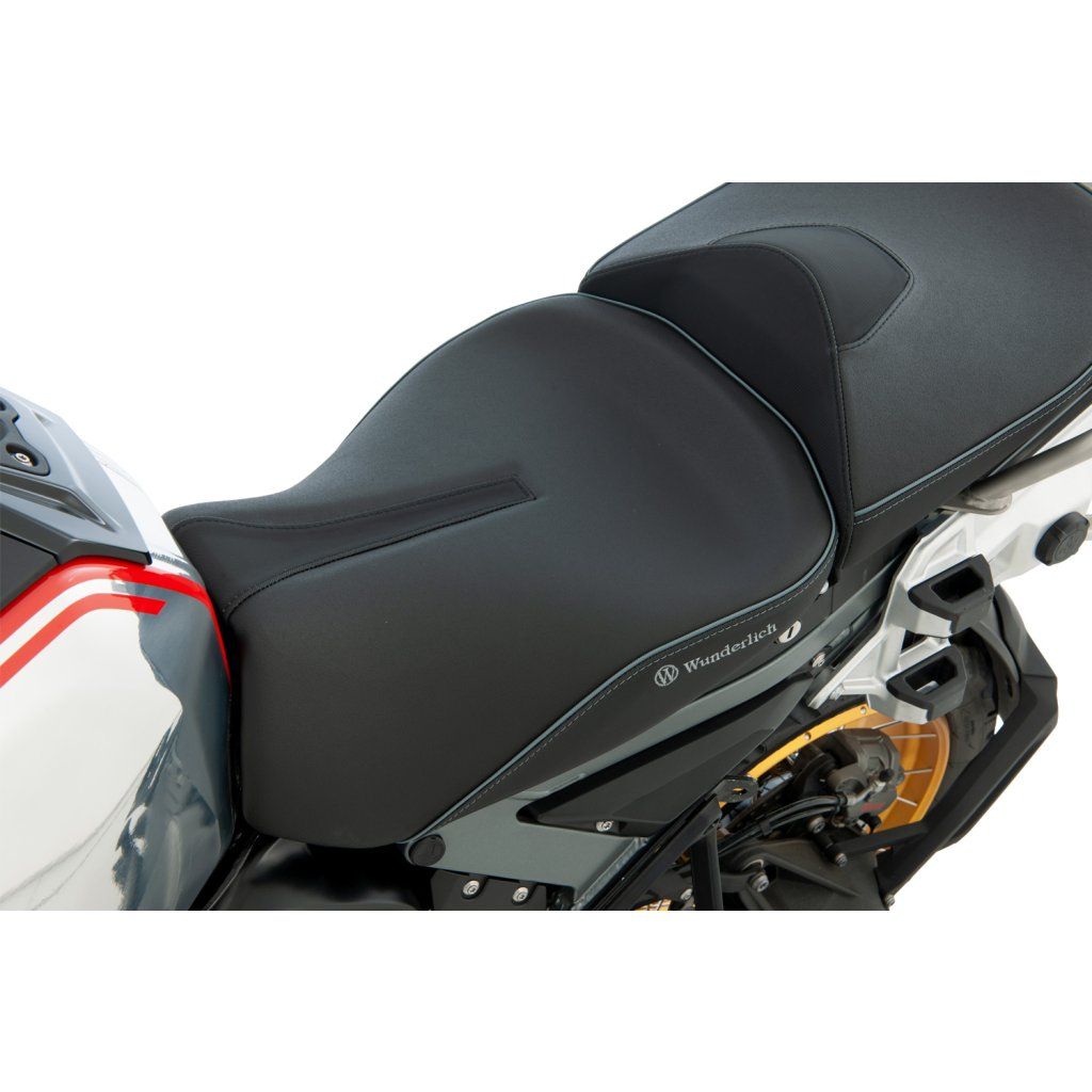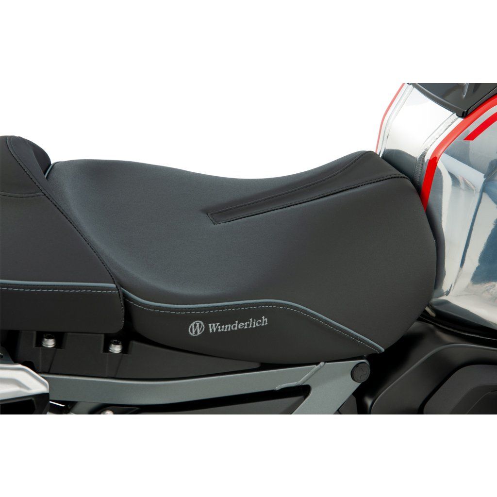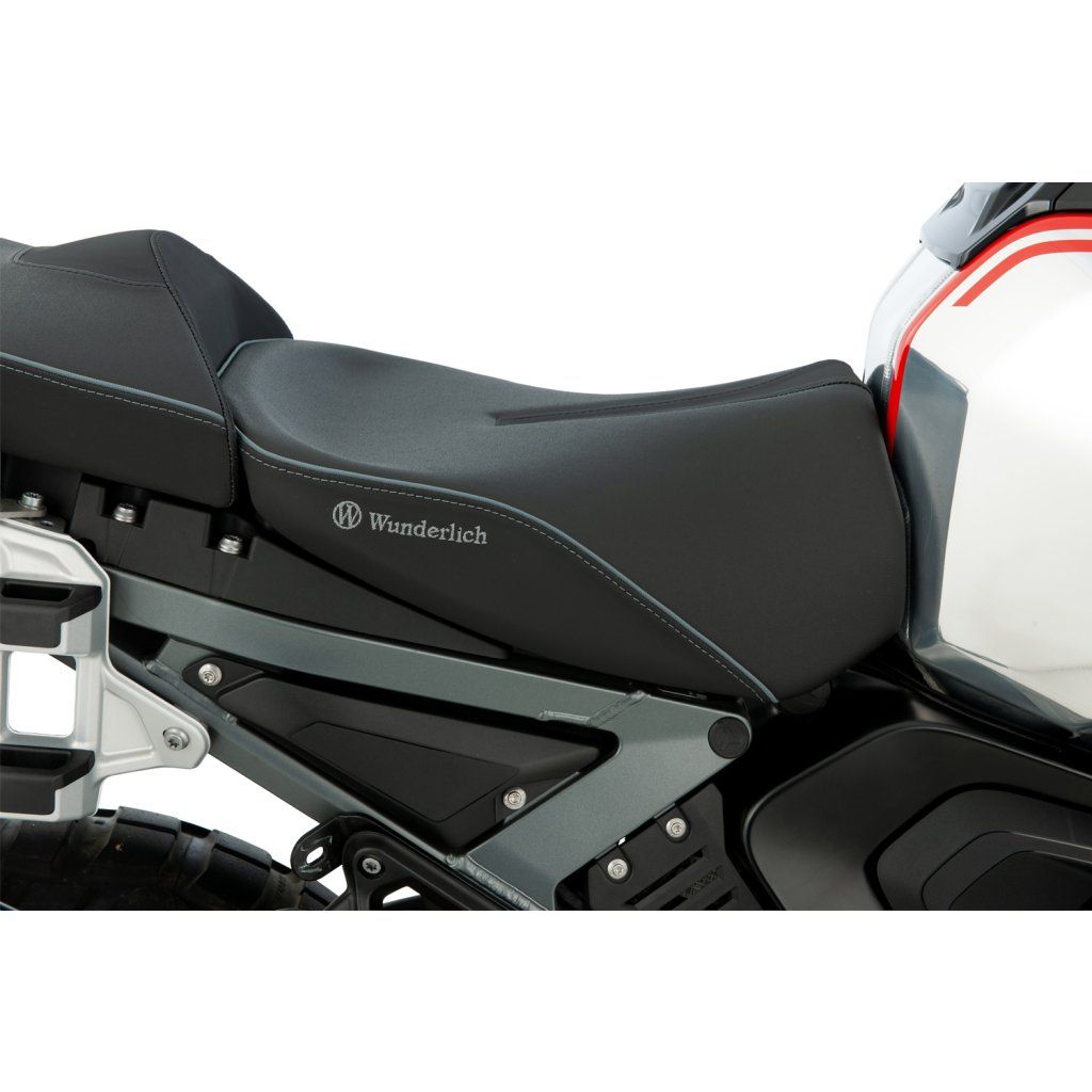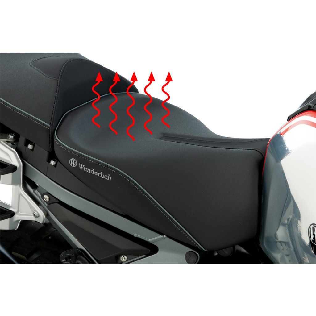 Wunderlich sedla jsou vyráběna s charakteristickým, ergonomickým 3D obrysem, který umožňuje řidiči splynout s jeho motocyklem BMW. Tvar a sklon náročně zpracovaného, progresivně konstruovaného, dvouvrstvého jádra sedla podporuje ergonomicky výhodné, a přirozené držení pánve. Takový posez je prostě uvolněný a aktivní. Není pochyb o tom, že uvolněné sezení vytváří plus v pasivní bezpečnosti. S povlakem ThermoPro je teplota sedla až o 25 °C nižší v létě na žhnoucím slunci ve srovnání s běžným, neošetřeným potahovým materiálem.