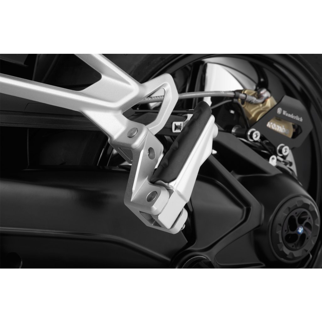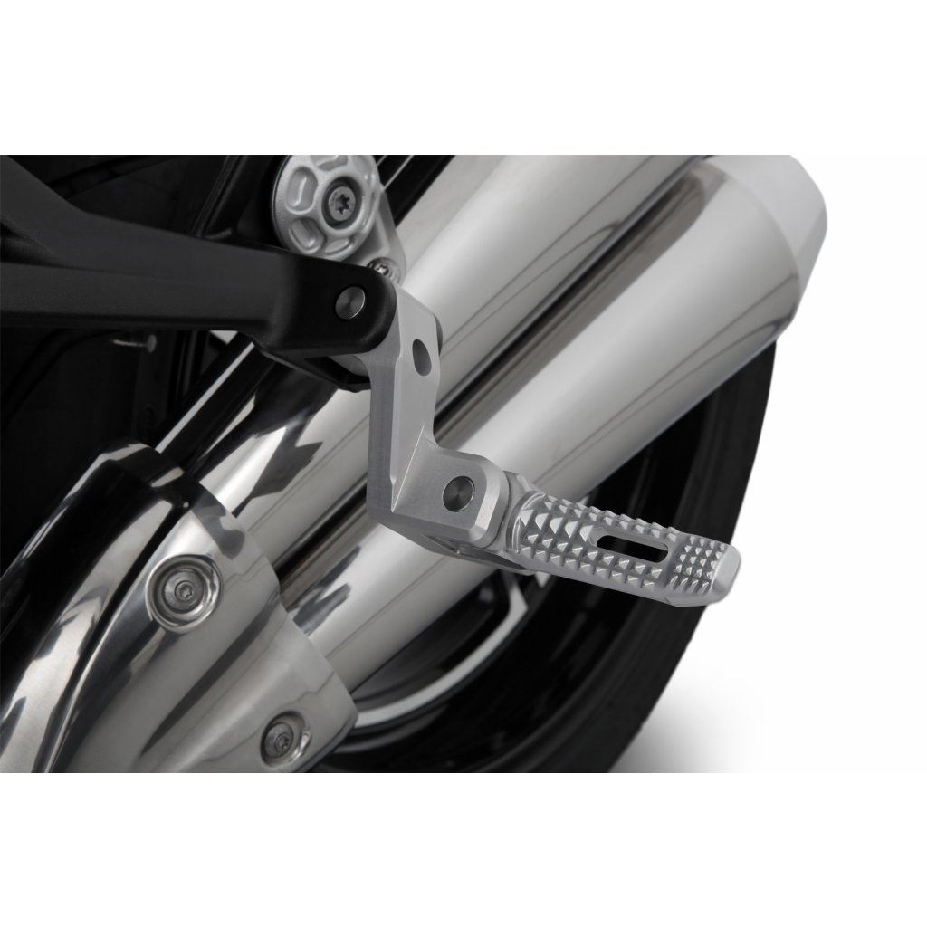 S naší sníženou verzí standardních stupaček pro spolujezdce se nohy posunou výrazně níže, přibližně o 45 mm, a úhel kolen se otevírá a zvětšuje, čímž vzniká pozoruhodně uvolněná a pohodlná jízdní poloha. Tím se snižují a často dokonce eliminují bolestivé a nepříjemné účinky, které mohou být někdy spojeny s úzkým úhlem kolen.
