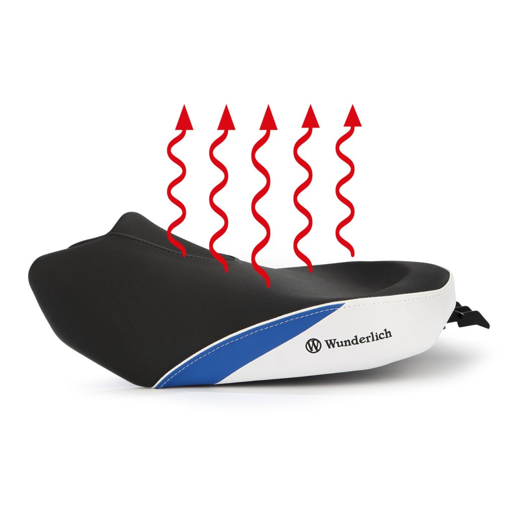 Wunderlich sedla jsou vyráběna s charakteristickým, ergonomickým 3D obrysem, který umožňuje řidiči splynout s jeho motocyklem BMW. Tvar a sklon náročně zpracovaného, progresivně konstruovaného, dvouvrstvého jádra sedla podporuje ergonomicky výhodné, a přirozené držení pánve. Takový posez je prostě uvolněný a aktivní. Není pochyb o tom, že uvolněné sezení vytváří plus v pasivní bezpečnosti. S povlakem ThermoPro je teplota sedla až o 25 °C nižší v létě na žhnoucím slunci ve srovnání s běžným, neošetřeným potahovým materiálem.