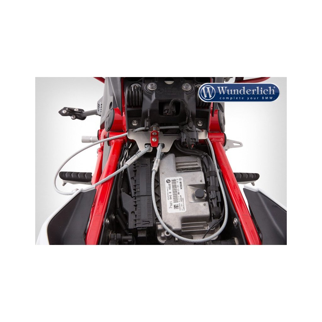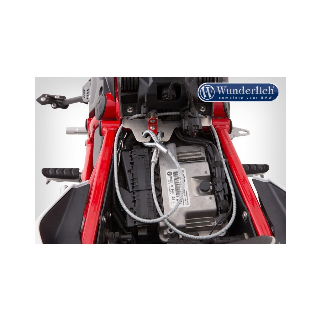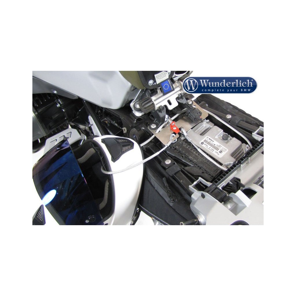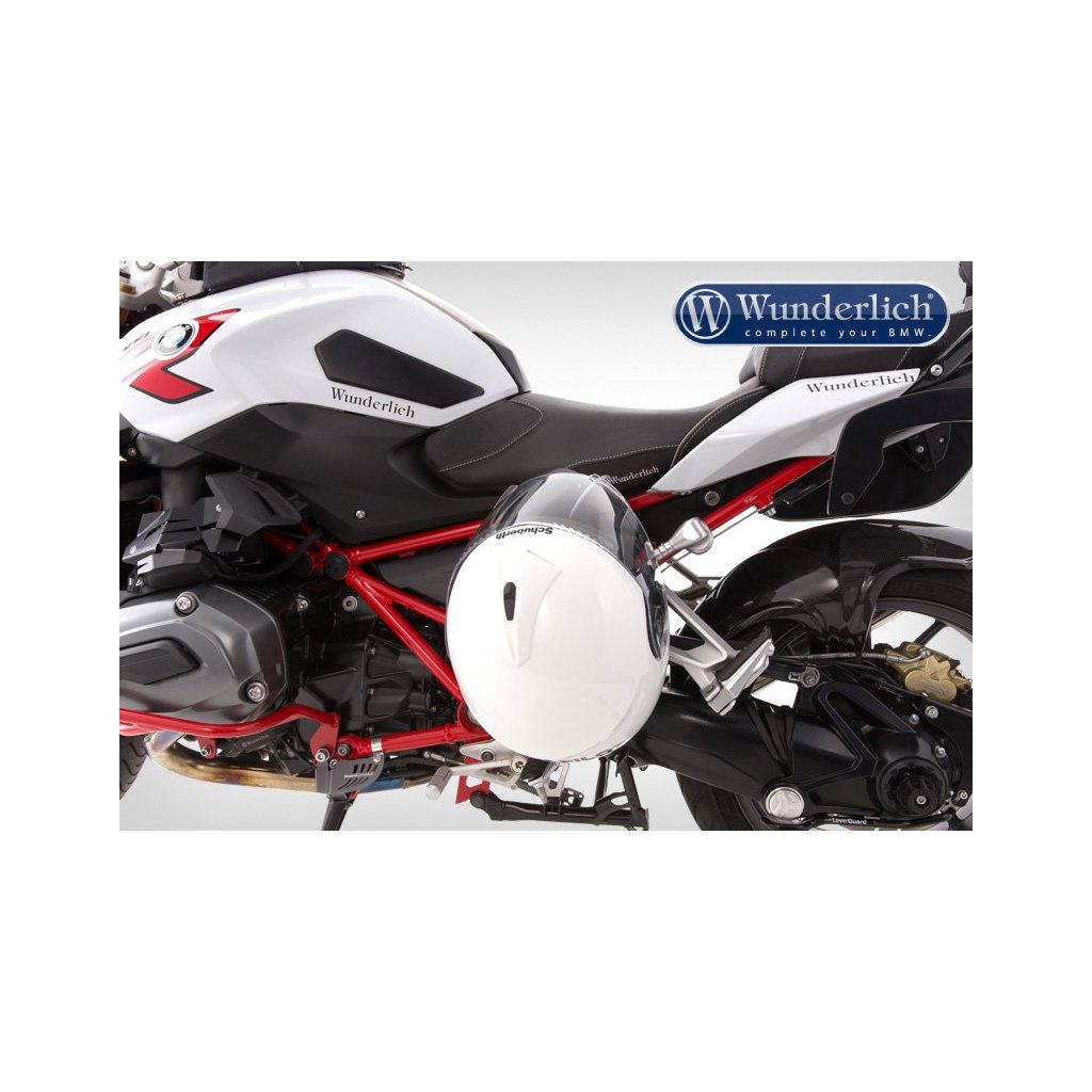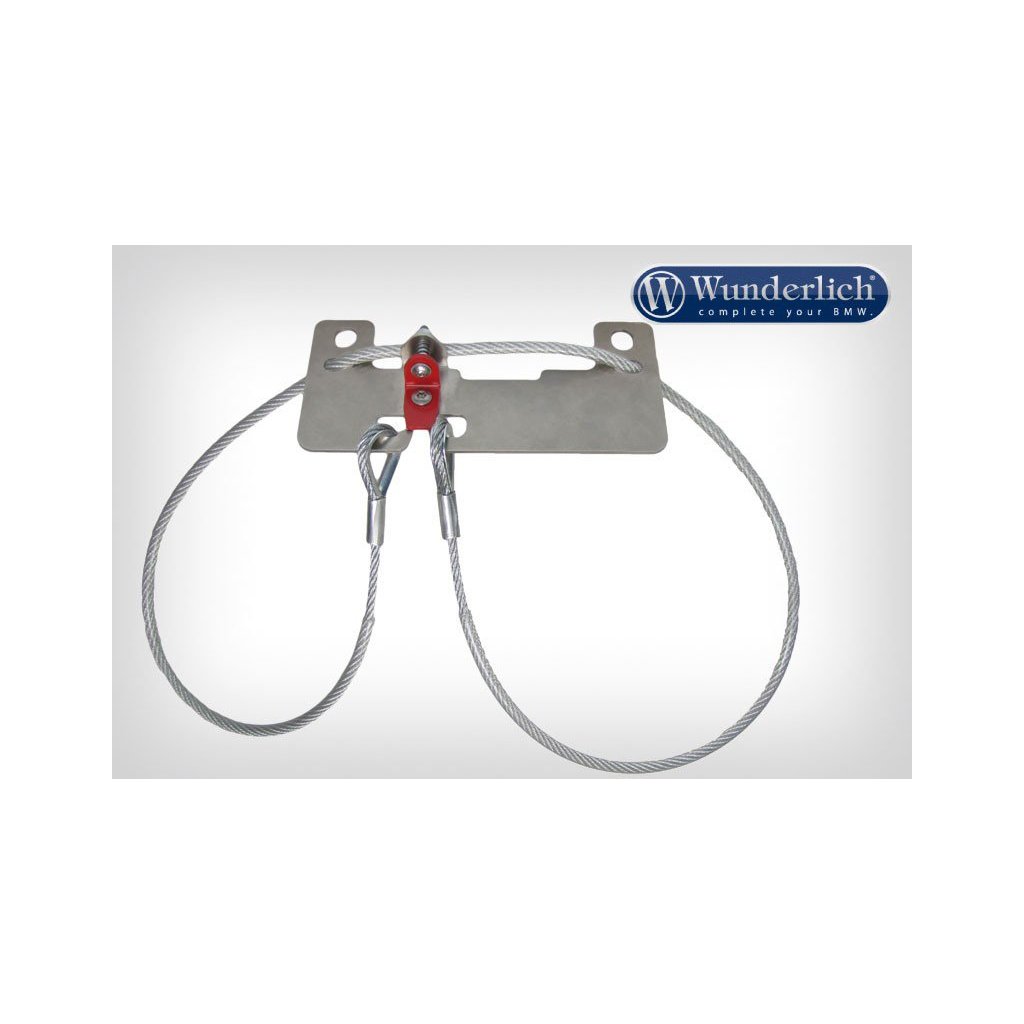 Jemně opláštěné bezpečnostní lano na dvě přilby je jednoduše uloženo, když se nepoužívá na závěsném zařízení. Velmi užitečný produkt. Nic lepšího neexistuje, máme speciálně pro většinu modelů BMW