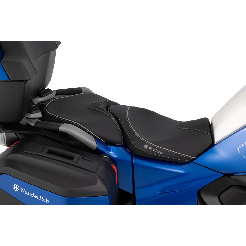 Wunderlich sedla jsou vyráběna s charakteristickým, ergonomickým 3D obrysem, který umožňuje řidiči splynout s jeho motocyklem BMW. Tvar a sklon náročně zpracovaného, progresivně konstruovaného, dvouvrstvého jádra sedla podporuje ergonomicky výhodné, a přirozené držení pánve. Takový posez je prostě uvolněný a aktivní. Není pochyb o tom, že uvolněné sezení vytváří plus v pasivní bezpečnosti. S povlakem ThermoPro je teplota sedla až o 25 °C nižší v létě na žhnoucím slunci ve srovnání s běžným, neošetřeným potahovým materiálem.