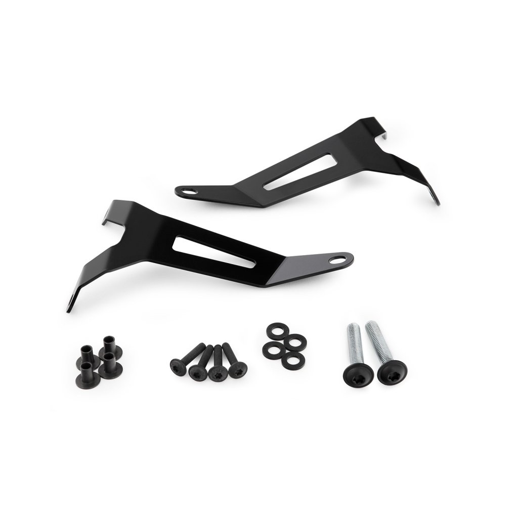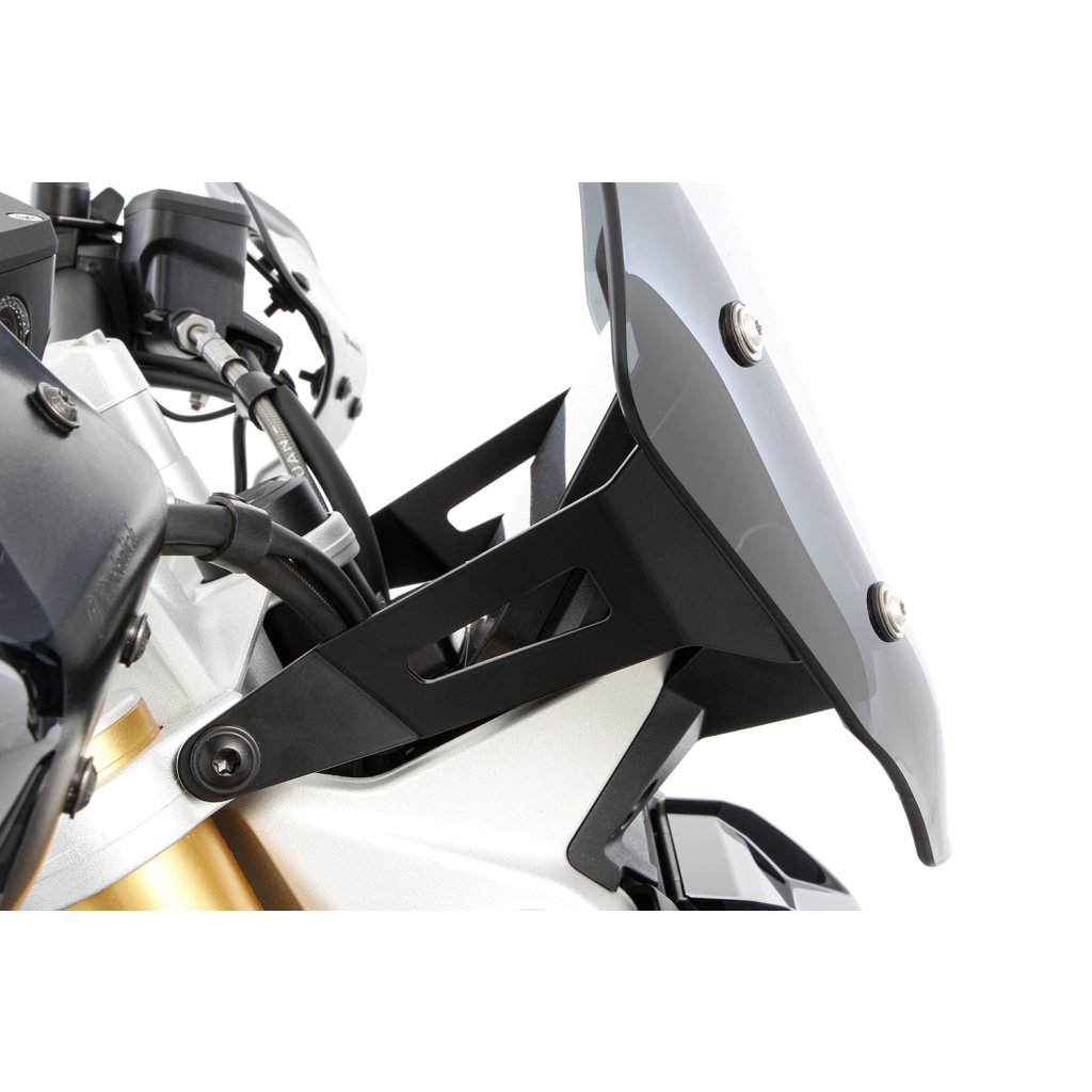 Montáž výztuhy je jednoduchá a efektivní. Tuhá výztuha se umisťuje mezi originální držák a samotný štít, přičemž se z boku přišroubuje k držáku světlometu. Tím se zvyšuje stabilita a snižuje vliv vysokého tlaku větru. Výsledkem je výrazně zpevněný držák, který minimalizuje vibrace a riziko prasknutí plexi.