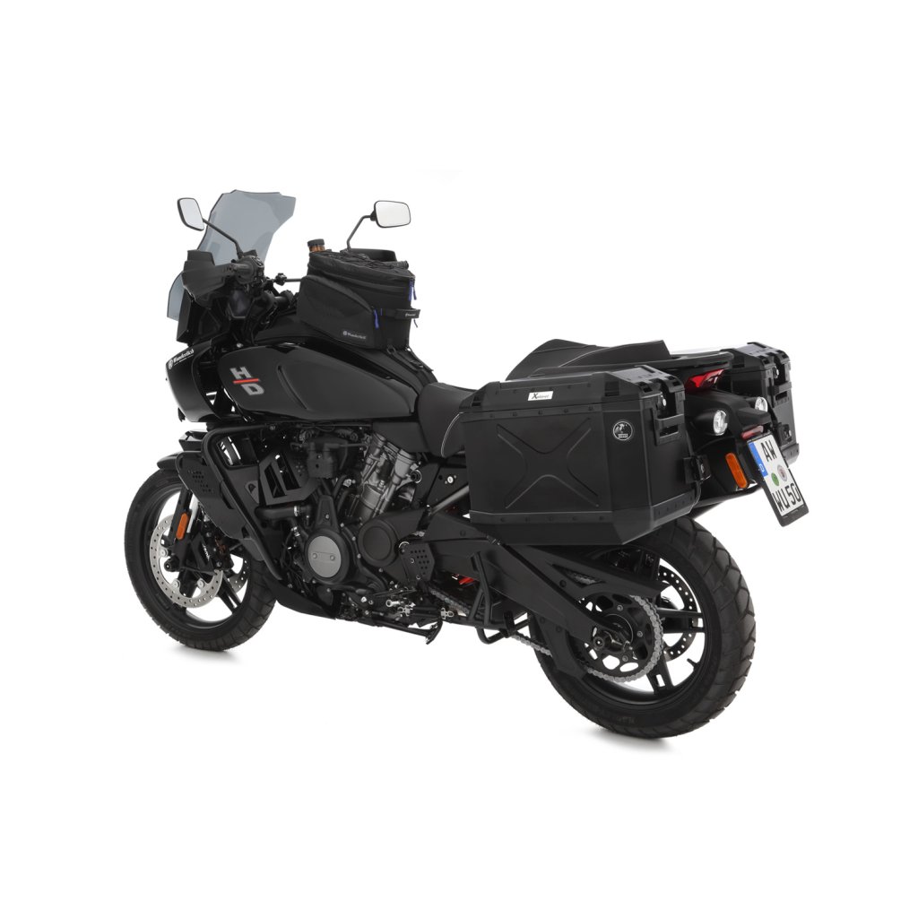 Vzhledem k mechanice a strmému úhlu náběhu bočního stojanu je vždy vhodné zkontrolovat, zda je Pan America bezpečně na svém místě. Proto jsme pro náš zvětšovací přístroj s bočním stojanem zvolili polyamidový plast, jehož příznivé kluzné chování podporuje bezpečné připevnění bočního stojanu. Materiál je také lehčí než hliník.